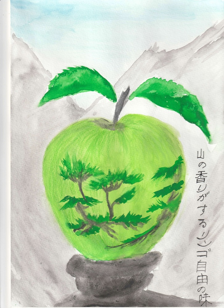 The painting is executed in watercolor on paper and continues the series "Japanese motifs". The inscription in Japanese contains the name of the painting.